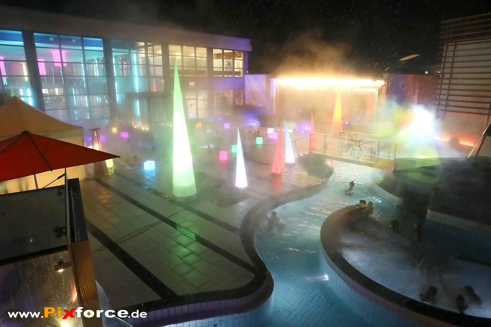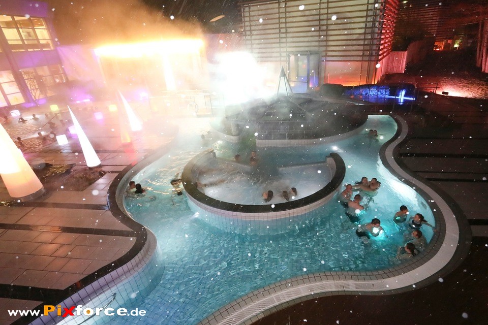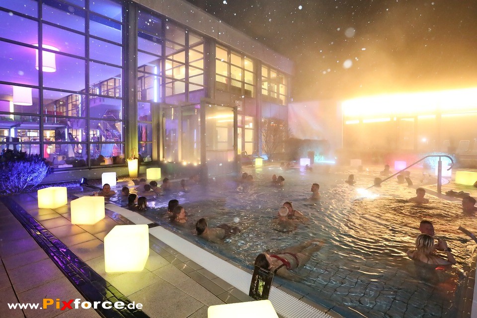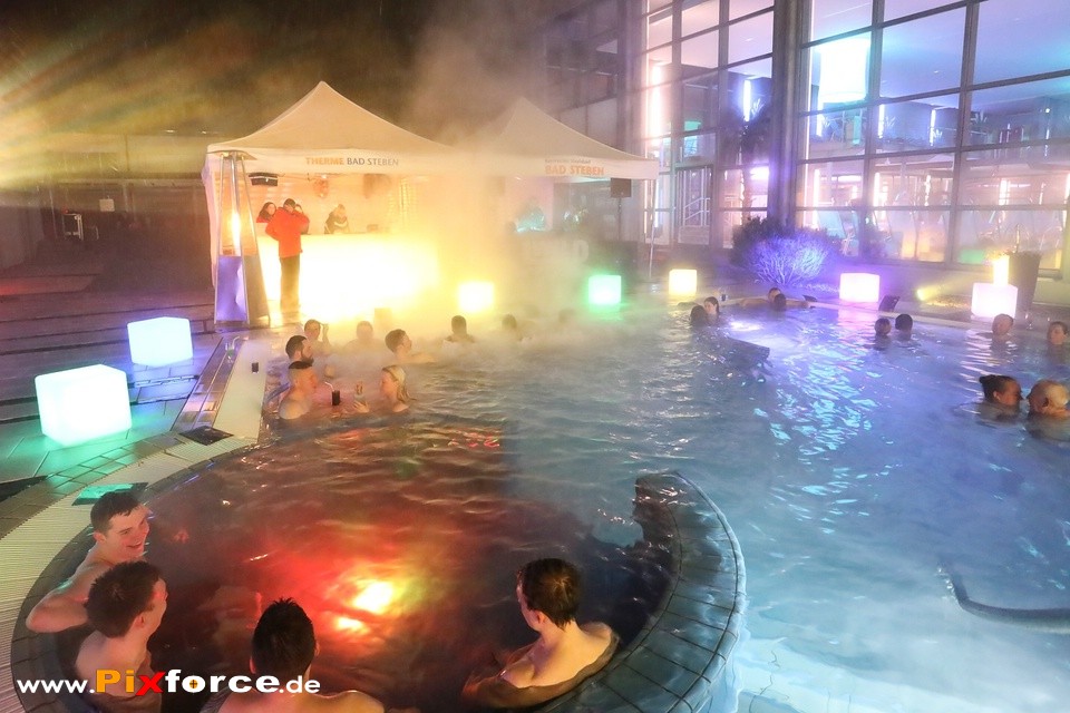 Trotz frostiger Kälte und leichtem Schneefall herrschte bei der 1. Langen Nacht der Sinne in der Therme Bad Steben eine grandiose Stimmung. Während die Flocken tanzten, heizte DJ Wild Loops den Gästen im warmen Sole-Außenbecken ordentlich ein und sorgte für echte Party-Vibes im Dampf. Wer es ruhiger mochte, fand im Saunaland bei entspannenden Aufgüssen der Saunameister den perfekten Kontrast zum Winterwetter. Ein stimmungsvoller Abend, der bewies, dass man auch bei schlechtem Wetter im Pool ausgelassen feiern kann. Hier sind die Impressionen dieses besonderen Abends!